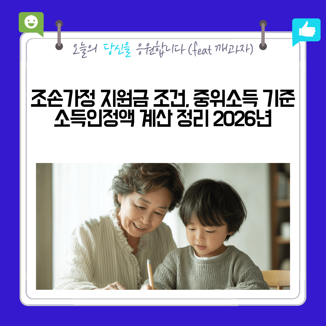 오늘은 조손가정 지원금이 어떤 구조로 운영되는지, 지원 조건은 무엇인지, 중위소득 기준은 어떻게 보는지, 그리고 실제로 많이 헷갈려 하는 소득인정액 계산 개념까지 한 번에 정리해볼게요.