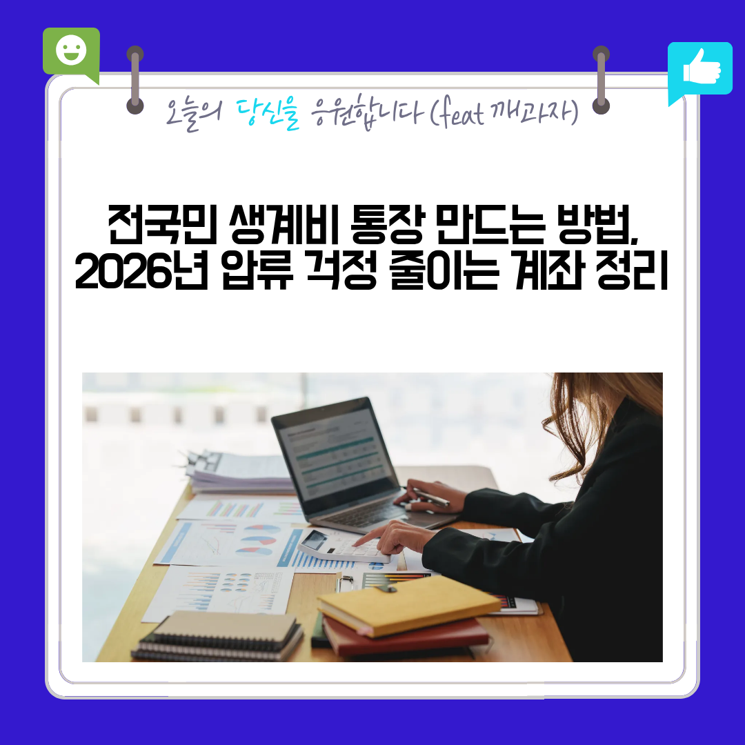 메타디스크립션, 전국민 생계비 통장 만드는 방법과 개설 절차, 보호 한도, 신청 대상, 2026년 시행 내용까지 한 번에 이해할 수 있도록 쉽게 정리한 안내 글입니다.