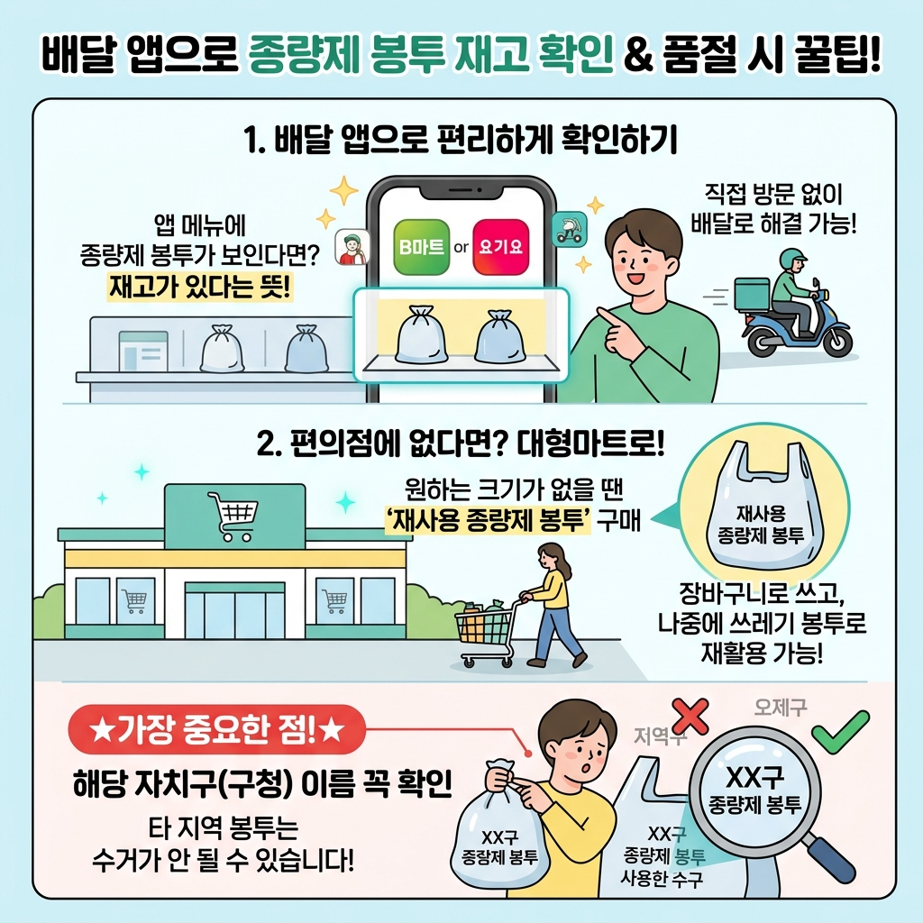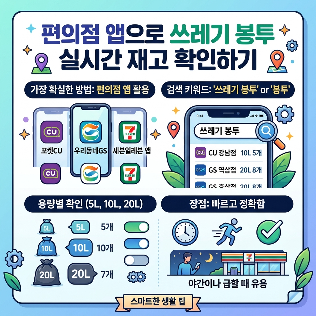 2026년 기준 종량제봉투 편의점 실시간 재고조회 방법과 지정판매소 확인법, 품절 시 대처 방법까지 한눈에 정리한 생활 정보 가이드입니다.
