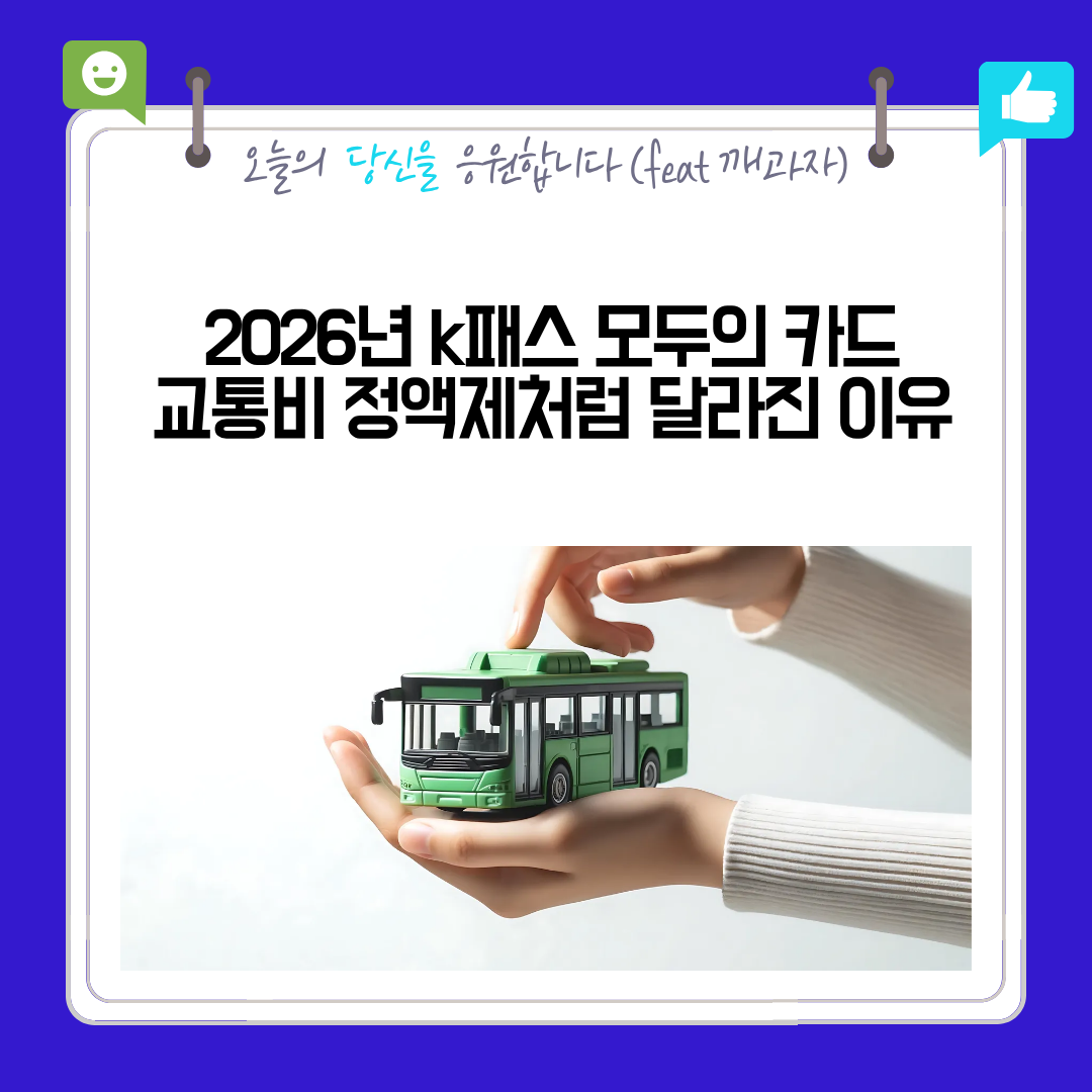 매일 반복되는 지하철과 시내버스 이용, 교통비가 은근히 부담으로 느껴지는 분들이 많을 겁니다. 특히 출퇴근이나 통학처럼 대중교통 이용 횟수가 많은 경우에는 한 달 교통비만 따로 계산해도 체감 지출이 큽니다. 이런 상황에서 2026년 1월 1일부터 적용되는 k패스 정책 변화는 생활비 관리 측면에서 꼭 짚고 넘어가야 할 내용입니다.