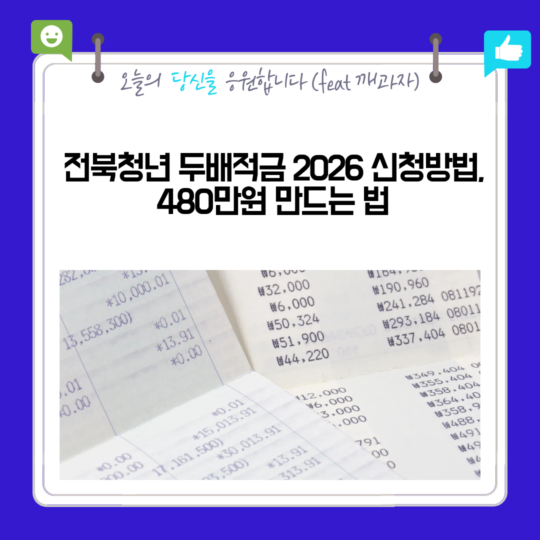 전북청년 두배적금 2026 신청기간과 자격조건, 신청방법을 정리했어요. 매달 10만 원 저축으로 2년 뒤 480만 원과 이자를 만들 수 있는 전북 청년 지원제도를 쉽게 확인해보세요.