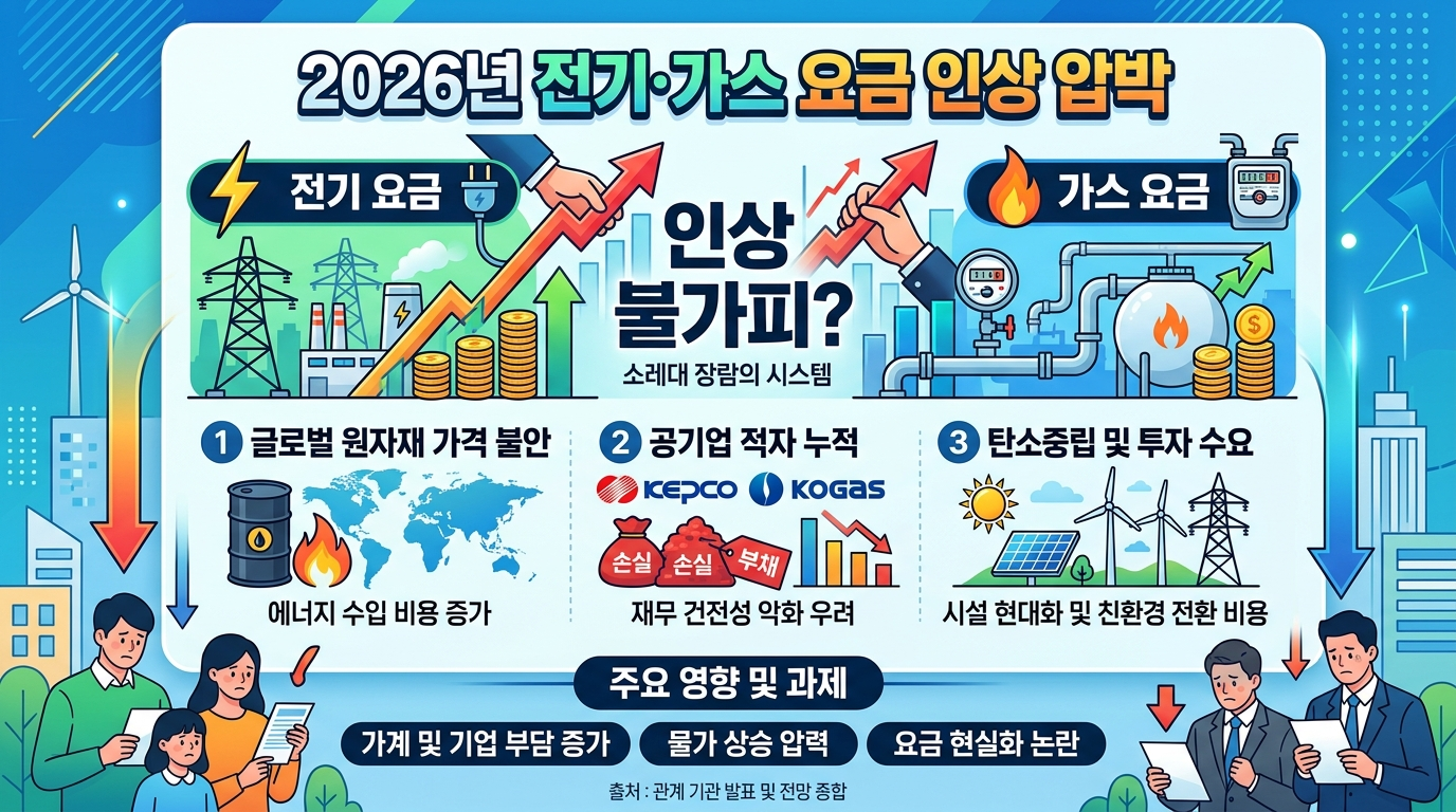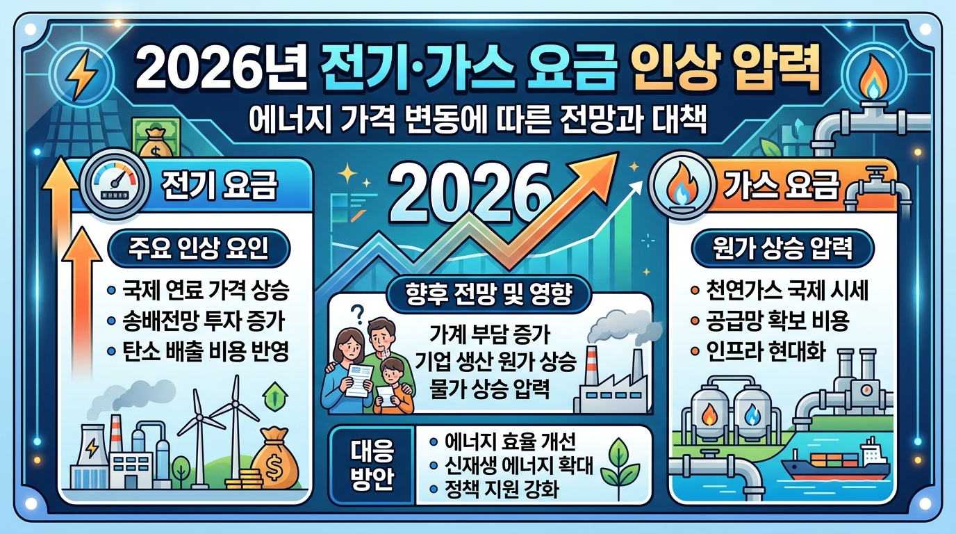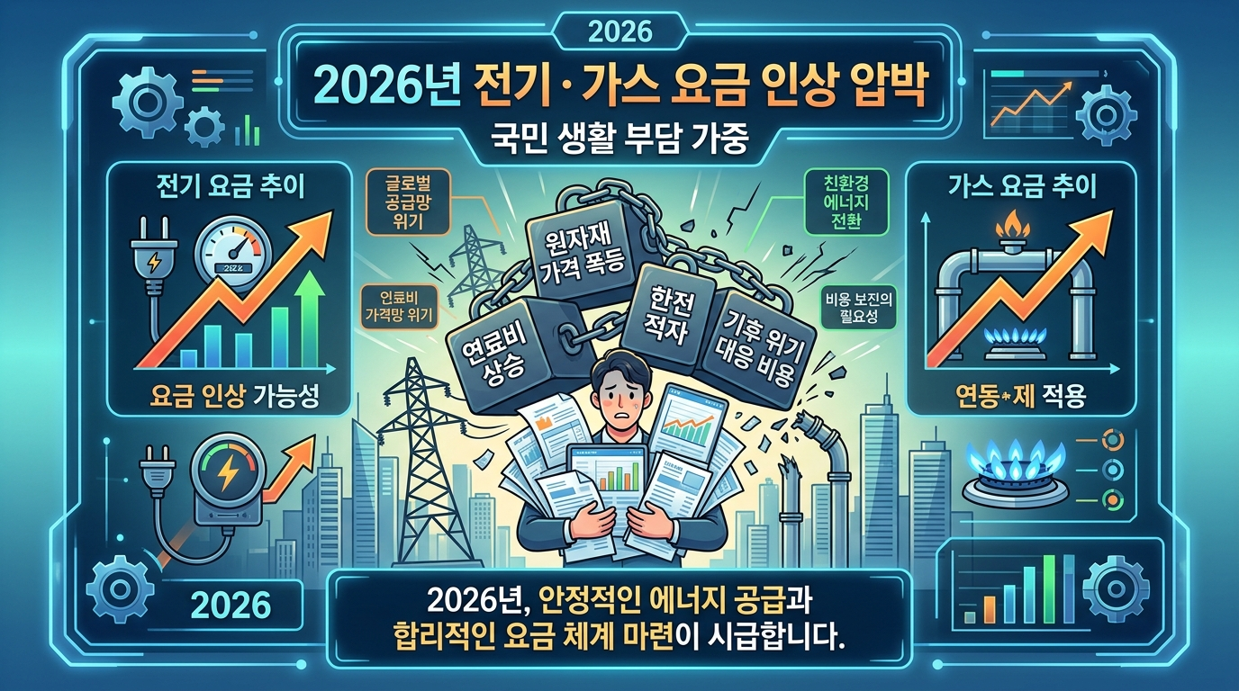 2026 전기 가스 요금 인상 압박과 에너지 요금 체계 개편 방향 정리. 인상 이유와 향후 변화까지 한 번에 확인하세요.